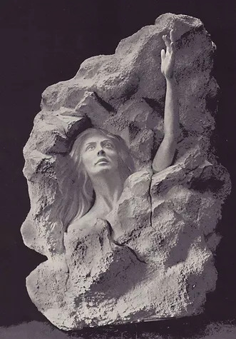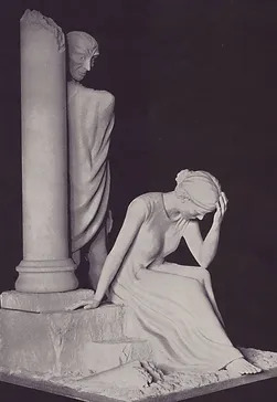 Haunted by his memories of World War I, Clarence Shaler grew very concerned as he watched the rise of fascism in Europe in the 1930s. As an ominous warning, Shaler created The Citadel in 1940 to symbolize the demise of Democracy. The devilish figure represents fascism as he lurks behind the woman, who is "Lady Liberty." The Ionic column, representing democracy and civilization, is crumbling. The Citadel was Shaler's last work. He died after falling from a balcony at his home in Pasadena, California just days after Pearl Harbor.