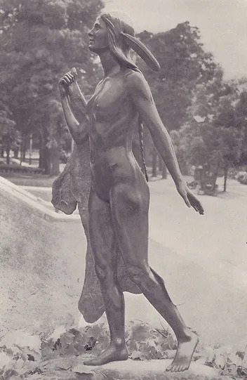 Mr. Shaler retired in the late 1920s, and did not begin sculpting until he was 70 years old. Many years prior, he wrote a short story about a Native American maiden named "Lawana." His first piece was a 22-inch portrayal of Lawana, and his friend Lorado Taft praised the piece. Shaler sought to make a larger casting of the statue. He could not find a model for the piece that fit his vision exactly, so instead he used certain features from a number of different women. For example, a nurse who cared for him while he was ill modeled her hands for the sculpture.