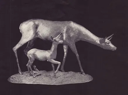 Clarence Shaler was an avid golfer and founding member of what was then called Rock River Country Club. The Shaler Company even manufactured golf balls and clubs from a period of time. He enjoyed golfing in the early morning, and would often see a group of deer at the edge of the fairway along the treeline. His piece Group of Deer, commonly known as Doe & Fawn was gifted to the Club as a nod to one of his favorite memories there.