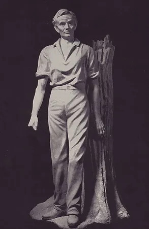 Clarence Shaler gifted two statues to his alma mater, Ripon College, 15 miles Northeast of Waupun. In 1939, Lincoln was given to the College, representing ". . . a man . . . at the outset of his public career. His character, formed by his early hardships in the wilderness, partakes of the strength of the oak, tempered by the warmth of his human sympathies. He is leaving that early environment in pursuit of an unknown destiny, untouched as yet by tragedy . . . a man at the noon of his powers, which his high resolve has already dedicated to the good of his country and of mankind."